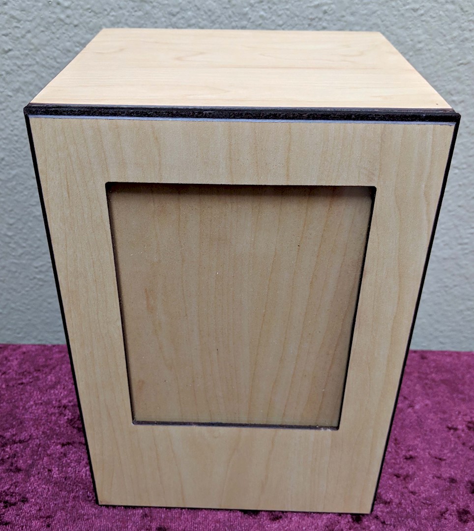 A photo can be placed in the frame on the front of the urn for special personalization.