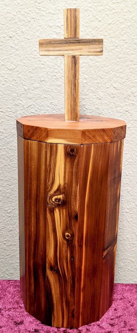 This urn is handcrafted by a local rancher using fresh cedar wood from South Dakota.